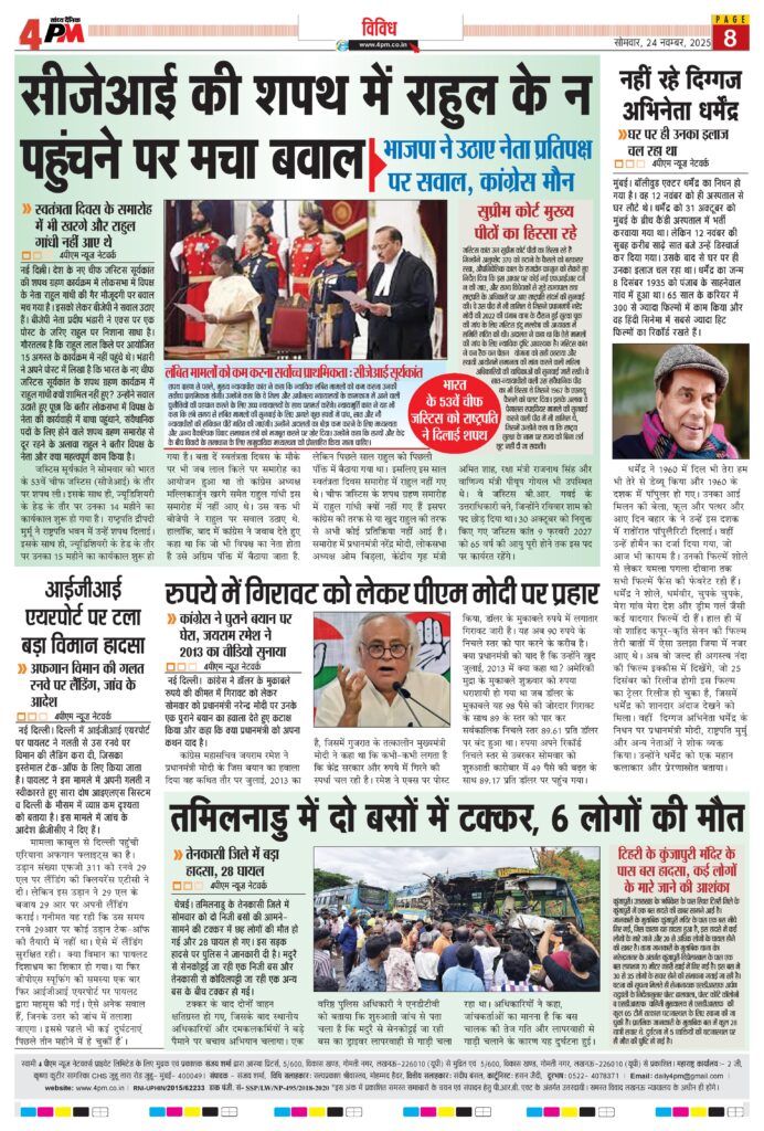 नई दिल्ली। देश के नए चीफ जस्टिस सूर्यकांत की शपथ ग्रहण कार्यक्रम में लोकसभा में विपक्ष के नेता राहुल गांधी की गैर मौजूदगी पर बवाल मच गया है। इसको लेकर बीजेपी ने सवाल उठाए हैं। बीजेपी नेता प्रदीप भंडारी ने एक्स पर एक पोस्ट के जरिए राहुल पर निशाना साधा है। गौरतलब है कि राहुल लाल किले पर आयोजित 15 अगस्त के कार्यक्रम में नहीं पहुंचे थे। भंडारी ने अपने पोस्ट में लिखा है कि भारत के नए चीफ जस्टिस सूर्यकांत के शपथ ग्रहण कार्यक्रम में राहुल गांधी क्यों शामिल नहीं हुए? उन्होंने सवाल उठाते हुए पूछा कि बतौर लोकसभा में विपक्ष के नेता की कार्यवाही में बाधा पहुंचाने, संवैधानिक पदों के लिए होने वाले शपथ ग्रहण समारोह से दूर रहने के अलावा राहुल ने बतौर विपक्ष के नेता और क्या महत्वपूर्ण काम किया है।