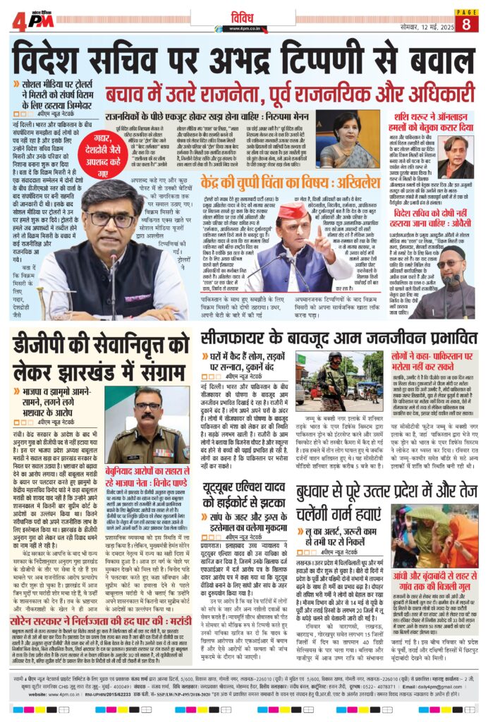 भारत और पाकिस्तान के बीच संघर्ष विराम समझौते की घोषणा के बाद सोशल मीडिया पर विदेश सचिव विक्रम मिसरी को निशाना बनाए जाने की घटना के बाद कांग्रेस नेता शशि थरूर ने उनका पुरजोर बचाव किया है। थरूर ने मिसरी के खिलाफ ऑनलाइन हमलों को बेतुका करार दिया और इस अनुभवी राजदूत की प्रशंसा की कि उन्होंने हाल के भारत-पाकिस्तान संबंधों में सबसे तनावपूर्ण क्षणों में से एक को धैर्यपूर्वक और प्रभावी ढंग से संभाला।