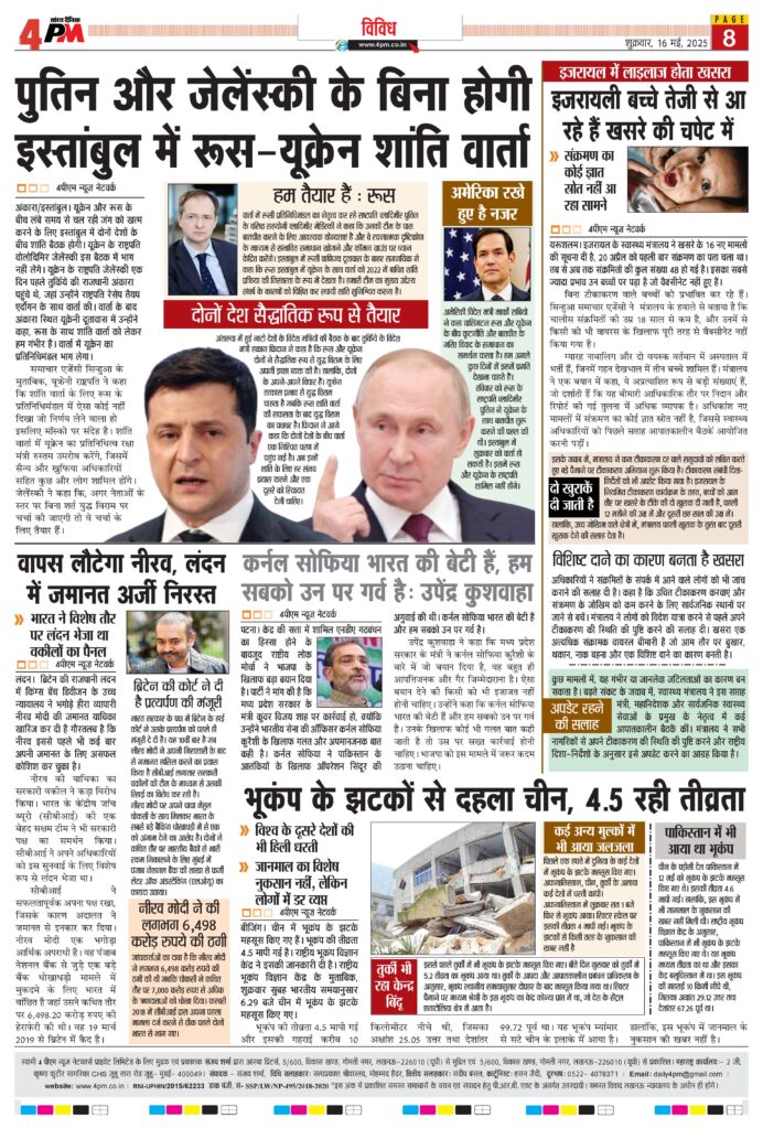 अमेरिकी विदेश मंत्री मार्को रुबियो ने कहा वाशिंगटन रूस और यूक्रेन के बीच कूटनीति और बातचीत के जरिए विवाद के समाधान का समर्थन करता है। हम अगले कुछ दिनों में इसमें प्रगति देखना चाहते हैं। रविवार को रूस के राष्ट्रपति व्लादिमीर पुतिन ने यूक्रेन के साथ बातचीत शुरू करने की पहल की थी। इस्तांबुल में शुक्रवार को वार्ता हो सकती है। इसमें रूस और यूक्रेन के राष्ट्रपति शामिल नहीं होंगे।