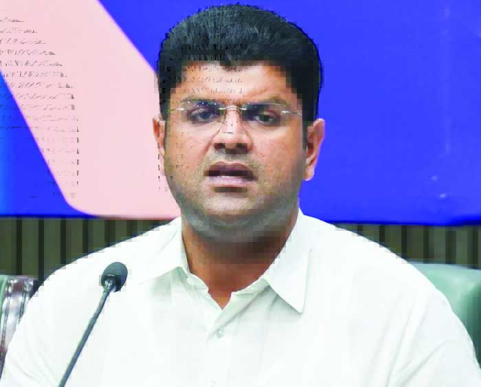 रोहतक। प्रदेश के पूर्व उप मुख्यमंत्री दुष्यंत चौटाला का कहना है कि भाजपा की प्रदेश सरकार बदमाशों को शह दे रही है। जलेबी व पकोड़ा व्यापारियों के बाद बदमाश अब शराब ठेकेदारों को धमका रहे हैं। आलम यह है कि पुलिस सुरक्षा में शराब ठेकों की बोली करवानी पड़ रही है। चौटाला वीरवार को पार्टी के प्रदेश कार्यालय में मीडिया के सवालों का जवाब दे रहे थे। दुष्यंत ने कहा कि मुख्यमंत्री नायब सैनी ने कुर्सी पर बैठते ही कहा था कि बदमाश हरियाणा छोड़ दें वरना। इसके बावजूद प्रदेश में व्यापारियों को धमकाया जा रहा है। शराब ठेकों की बोली तक नहीं हो रही है।