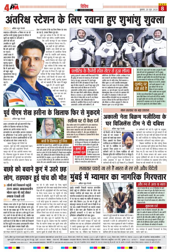 शुभांशु शुक्ला के अंकल एमबी मिश्रा बताते हैं कि मैं शुभांशु को बचपन से जानता हूं। मैं उसे बधाई देता हूं। वह बहुत अच्छा बच्चा है। उसने बहुत मेहनत की है। मैंने उसे बचपन से देखा है। वह बहुत ही सीधा लडक़ा है। आज मैं बहुत खुश हूं कि हमारा बच्चा इतने बड़े मिशन पर जा रहा है। अंतरराष्ट्रीय अंतरिक्ष स्टेशन (आईएसएस) के लिए एक खास निजी अंतरिक्ष मिशन, एक्सिओम मिशन 4 (एएक्स-4) आज फ्लोरिडा के कैनेडी स्पेस सेंटर से लॉन्च होने जा रहा है। यह मिशन नासा, स्पेसएक्स और एक्सिओम स्पेस के सहयोग से आयोजित किया जा रहा है। इसमें चार अंतरराष्ट्रीय अंतरिक्ष यात्री शामिल हैं, जो वाणिज्यिक और वैश्विक अंतरिक्ष अन्वेषण में एक नया कदम है। यह मिशन स्पेसएक्स के ड्रैगन अंतरिक्ष यान के जरिए होगा, जिसे फाल्कन 9 रॉकेट सुबह 2:31 बजे (भारतीय समयानुसार दोपहर 12:01 बजे) कक्षा में ले जाएगा। अंतरिक्ष यान का आईएसएस के साथ जुड़ाव (डॉकिंग) गुरुवार, 26 जून को सुबह 7:00 बजे (भारतीय समयानुसार शाम 4:30 बजे) के आसपास होने की उम्मीद है। स्पेसएक्स ने लॉन्च से पहले सोशल मीडिया प्लेटफॉर्म एक्स पर जानकारी दी, एएक्स 4 मिशन के लिए सभी सिस्टम तैयार हैं और मौसम 90 फीसद अनुकूल है। लॉन्च का वेबकास्ट सुबह 12:30 बजे शुरू होगा।