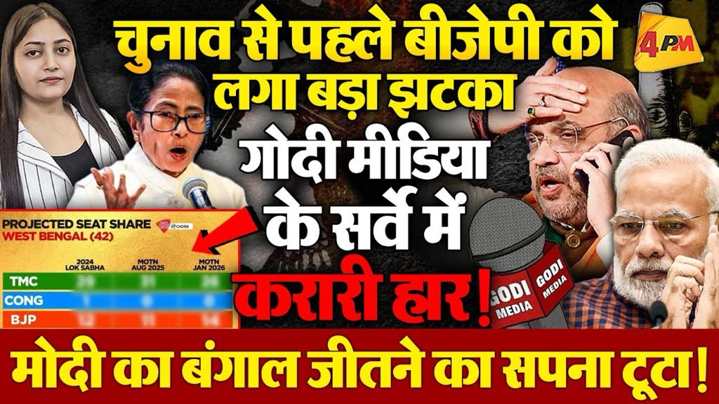 4पीएम न्यूज नेटवर्क: क्या सारे जतन करने के बाद भी ममता दीदी से हार गए मोदी जी? क्या चुनाव से पहले ही बीजेपी का बंगाल जीतने का सपना चकनाचूर हो गया है? क्या एसआई आर कराकर भी हार रही है बीजेपी? ये सवाल इसलिए उठ रहा है क्योंकि अभी हाल ही में गोदी मीडिया ने एक सर्वे कराया है जिसके नतीजों ने बीजेपी की सारी प्लानिंग पर पानी फेर दिया है।
