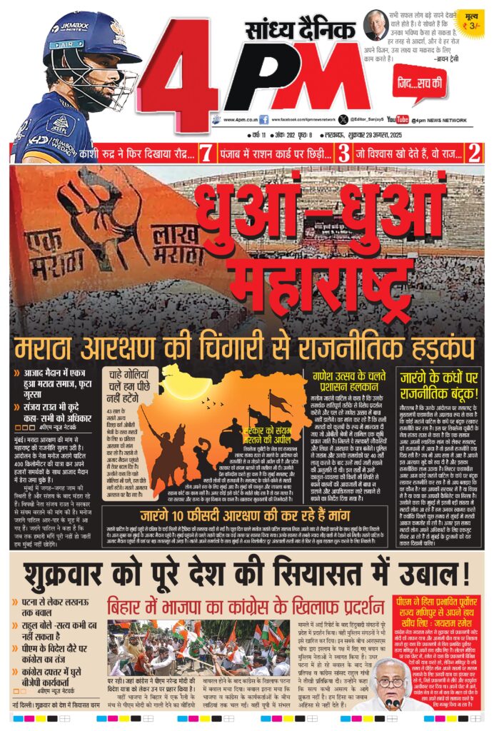 मुंबई। मराठा आरक्षण की मांग से महाराष्ट्र की राजनीति सुलग उठी है। आंदोलन के नेता मनोज जरांगे पाटिल 400 किलोमीटर की यात्रा कर अपने हजारों समर्थकों के साथ आजाद मैदान में डेरा जमा चुके हैं।
