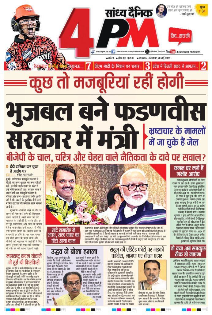 अभी तक महायुति सरकार रफ्तार पकडऩे में नाकामयाब रही है। समय—समय पर लगातार ऐसा कुछ घटित हो रहा है जिससे सरकार के काम—काज के तरीकों पर सवाल उठ रहे हैं। राजनीतिक हलकों से जुड़े लोगों का कहना है कि उम्मीद है कि अब सबकुछ ठीक होगा और सरकार पारदर्शी तरीके से काम करेगी। हालांकि छगन के मंत्री बनने के बाद बीजेपी के चाल—चरित और चेहरे वाले नारे पर सवाल उठना लाजमी हो गये हैं। कांग्रेस से जुड़े नेताओं ने सवाल पूछा है कि प्रचंड बहुमत के बाद ऐसी कौन सी मजबूरी थी जिसमें छगन भुजबल जैसे व्यक्ति को मंत्री बनाना पड़ा।