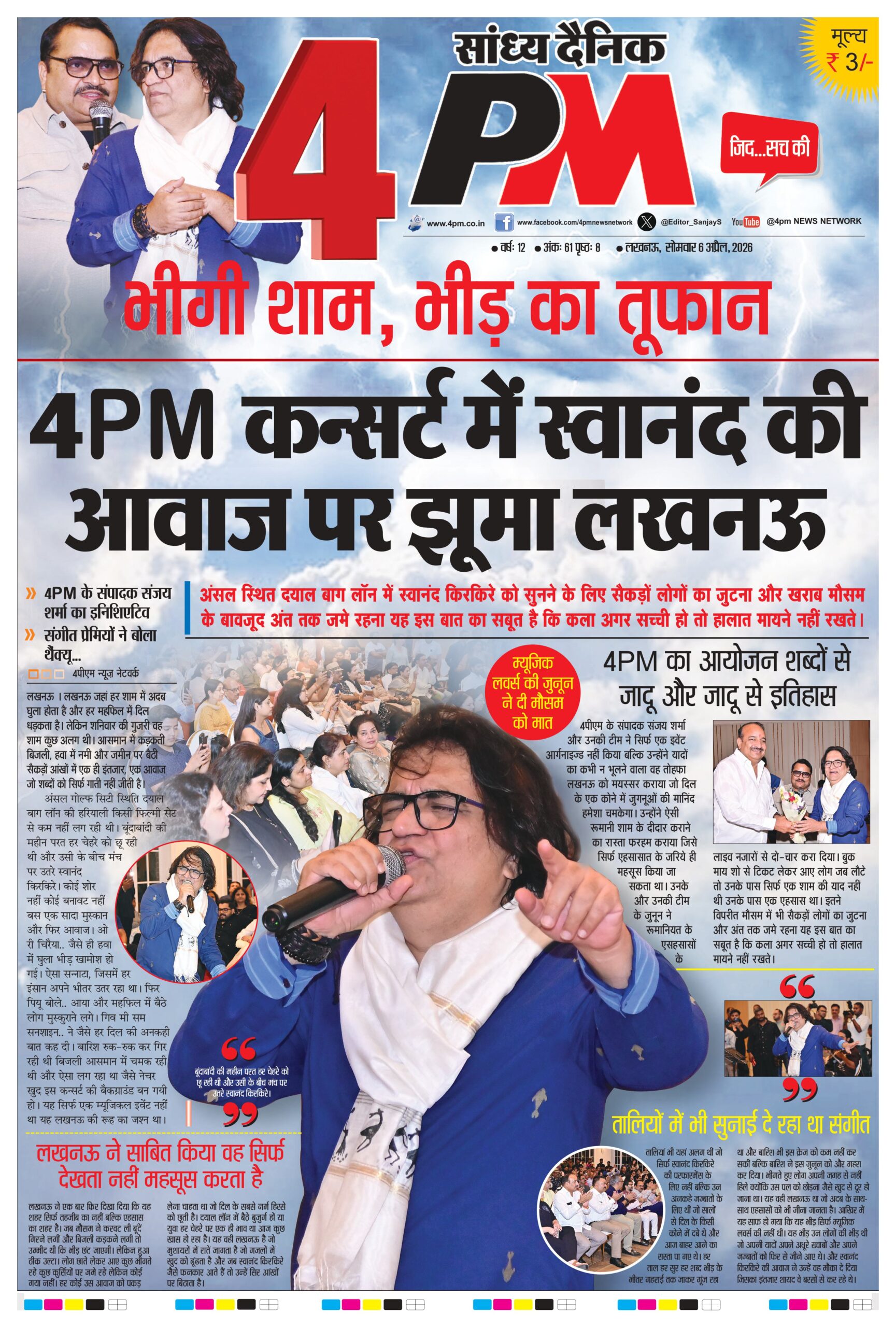 भीगी शाम, भीड़ का तूफान : 4PM कन्सर्ट में स्वानंद की आवाज पर झूमा लखनऊ