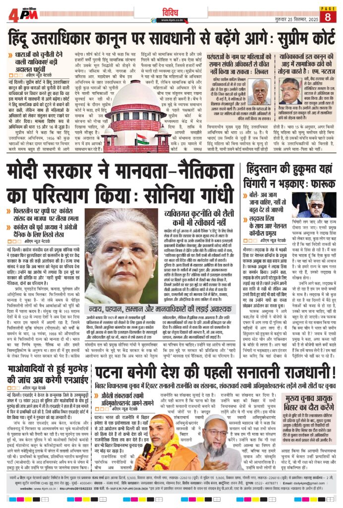कांग्रेस की पूर्व अध्यक्ष ने अंग्रेजी दैनिक ‘द हिंदू’ के लिए लिखे लेख में कहा कि सरकार के कदम मुख्य रूप से भारत के संवैधानिक मूल्यों या उसके सामरिक हितों के बजाय इजराइली प्रधानमंत्री बेंजामिन नेतन्याहू और प्रधानमंत्री नरेन्द्र मोदी की व्यक्तिगत मित्रता से प्रेरित प्रतीत होते हैं। सोनिया गांधी ने कहा, ‘व्यक्तिगत कूटनीति की यह शैली कभी भी स्वीकार्य नहीं है और यह भारत की विदेश नीति का मार्गदर्शक नहीं हो सकती। दुनिया के अन्य हिस्सों में-खासकर अमेरिका में ऐसा करने के प्रयास हाल के महीनों में सबसे दुखद और अपमानजनक तरीके से विफल हुए हैं।’ सोनिया गांधी ने इजराइल-फलस्तीन संघर्ष पर पिछले कुछ महीनों में तीसरी बार लेख लिखा है, जिनमें उन्होंने हर बार इस मुद्दे पर मोदी सरकार के रुख की तीखी आलोचना की है। सोनिया गांधी ने लेख में कहा कि फ्रांस, फलस्तीनी राष्ट्रको मान्यता देने में ब्रिटेन, कनाडा, पुर्तगाल और ऑस्ट्रेलिया के साथ शामिल हो गया है।