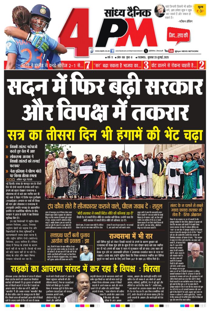 नई दिल्ली। संसद के मानसून सत्र के तीसरे दिन भी दोनों सदनों में हंगामा जारी रहा। हंगामे को बढ़ता देखकर राज्यसभा व लोकसभा को दो बजे तक स्थगित कर दी गई। बता दे बिहार में विशेष गहन पुनरीक्षण (एसआईआर) अभ्यास पर चर्चा की विपक्ष की मांग और लोकसभा व राज्यसभा में उपराष्ट्रपति जगदीप धनखड़ के अप्रत्याशित इस्तीफे पर राजनीतिक गतिरोध के बीच, सरकार ने आज के एजेंडे में छह विधेयक सूचीबद्ध किए हैं।