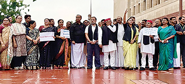 - विपक्षी सांसद नारेबाजी करते हुए वेल में आए