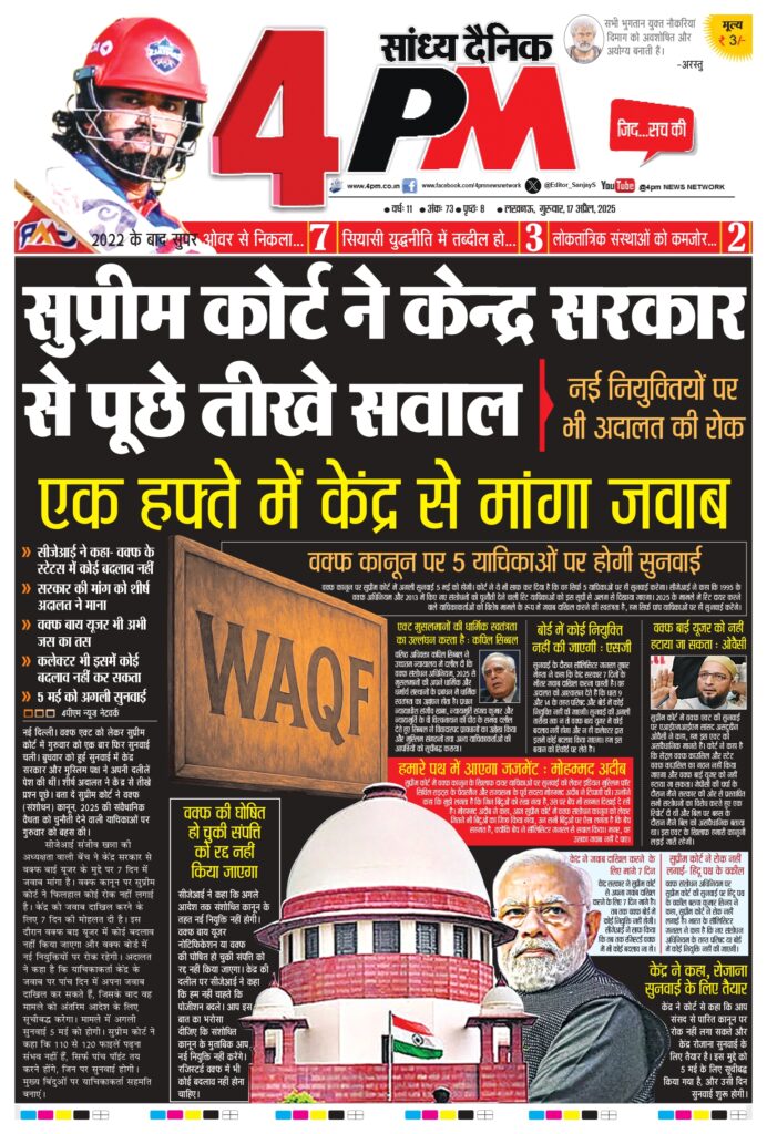 नई दिल्ली। वक्फ एक्ट को लेकर सुप्रीम कोर्ट में गुरुवार को एक बार फिर सुनवाई चली। बुधवार को हुई सुनवाई में केंद्र सरकार और मुस्लिम पक्ष ने अपनी दलीलें पेश की थीं। शीर्ष अदालत ने कें द्र सेे तीखे प्रश्न पूछे। बता दें सुप्रीम कोर्ट ने वक्फ (संशोधन) कानून, 2025 की संवैधानिक वैधता को चुनौती देने वाली याचिकाओं पर गुरुवार को बहस की। सीजेआई संजीव खन्ना की अध्यक्षता वाली बेंच ने केंद्र सरकार से वक्फ बाई यूजर के मुद्दे पर 7 दिन में जवाब मांगा है। वक्फ कानून पर सुप्रीम कोर्ट ने फिलहाल कोई रोक नहीं लगाई है। केंद्र को जवाब दाखिल करने के लिए 7 दिन की मोहलत दी है। इस दौरान वक्फ बाइ यूजर में कोई बदलाव नहीं किया जाएगा और वक्फ बोर्ड में नई नियुक्तियों पर रोक रहेगी। अदालत ने कहा है कि याचिकाकर्ता केंद्र के जवाब पर पांच दिन में अपना जवाब दाखिल कर सकते हैं, जिसके बाद वह मामले को अंतरिम आदेश के लिए सूचीबद्ध करेगा। मामले में अगली सुनवाई 5 मई को होगी। सुप्रीम कोर्ट ने कहा कि 110 से 120 फाइलें पढऩा संभव नहीं हैं, सिर्फ पांच पॉइंट तय करने होंगे, जिन पर सुनवाई होगी। मुख्य बिंदुओं पर याचिकाकर्ता सहमति बनाएं।