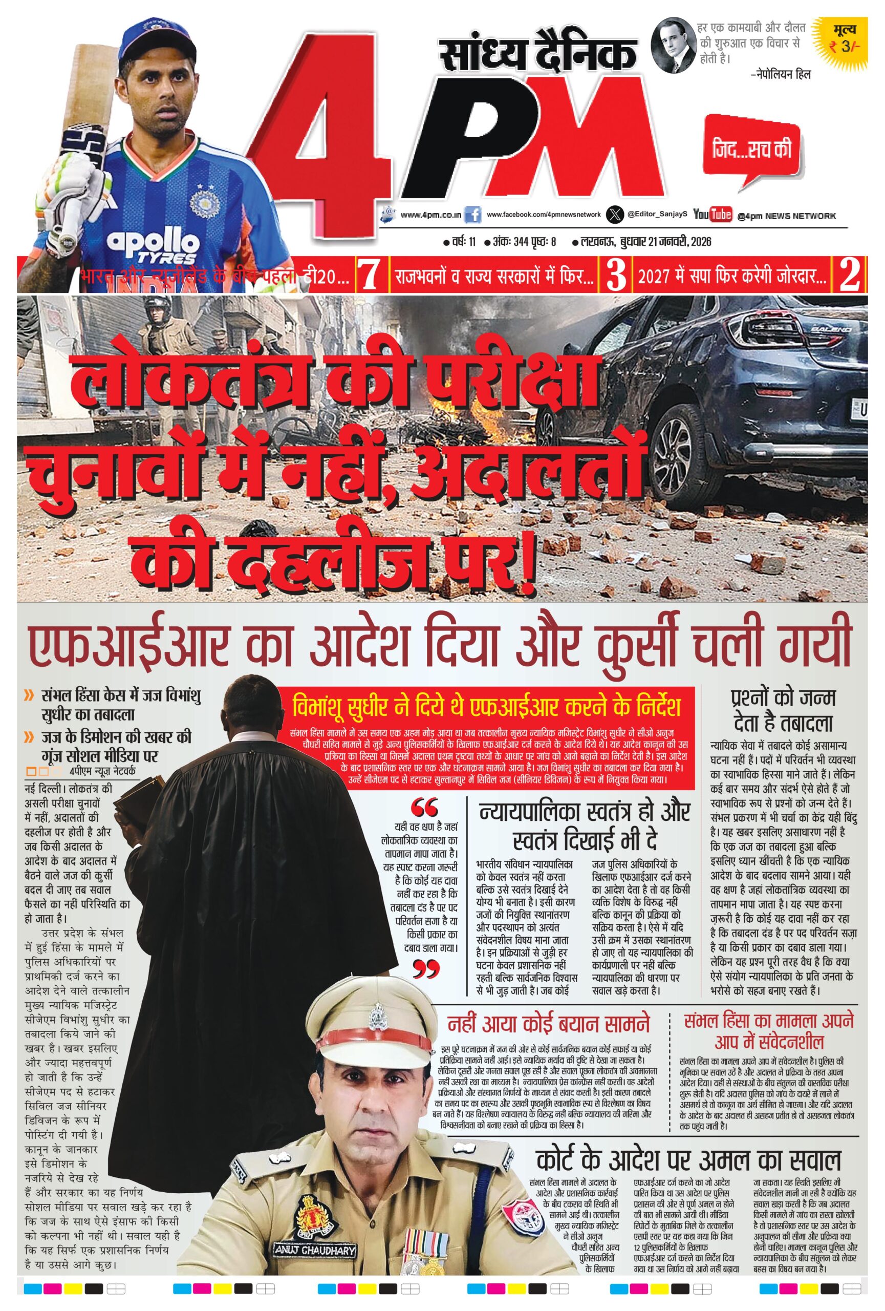 संभल हिंसा मामले में उस समय एक अहम मोड़ आया था जब तत्कालीन मुख्य न्यायिक मजिस्ट्रेट विभांशु सुधीर ने सीओ अनुज चौधरी सहित मामले से जुड़े अन्य पुलिसकर्मियों के खिलाफ एफआईआर दर्ज करने के आदेश दिये थे। यह आदेश कानून की उस प्रक्रिया का हिस्सा था जिसमें अदालत प्रथम दृष्टया तथ्यों के आधार पर जांच को आगे बढ़ाने का निर्देश देती है। इस आदेश के बाद प्रशासनिक स्तर पर एक और घटनाक्रम सामने आया है। जज विभांशु सुधीर का तबादला कर दिया गया है। उन्हें सीजेएम पद से हटाकर सुल्तानपुर में सिविल जज (सीनियर डिविजन) के रूप में नियुक्त किया गया।