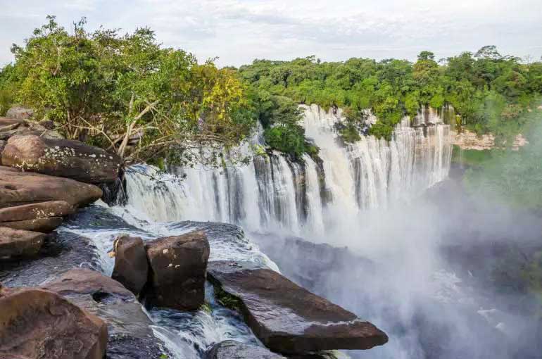 उत्तर-पश्चिमी अंगोला प्रांत, मलांजे में, लुकाला नदी कई खंडों में गिरती है, जिन्हें अक्सर अफ्रीका के दूसरे सबसे बड़े झरनों में गिना जाता है। विक्टोरिया जलप्रपात की लगभग समान ऊंचाई वाले, कालंदुला जलप्रपात के असंख्य झरने, मौसम के अनुसार, घोड़े की नाल के आकार में 1,350 से 1,900 फीट चौड़े हैं। कालंदुला जलप्रपात को इतना मनोरम बनाने वाला एक कारण अंगोला के वर्षावन की हरी-भरी हरियाली के बीच झाग और फुहारों का अद्भुत नजारा है। ये जलप्रपात पक्षी दर्शन के लिए भी एक लोकप्रिय स्थान हैं, क्योंकि इस क्षेत्र में पक्षियों की कई विभिन्न प्रजातियाँ देखी जा सकती हैं।