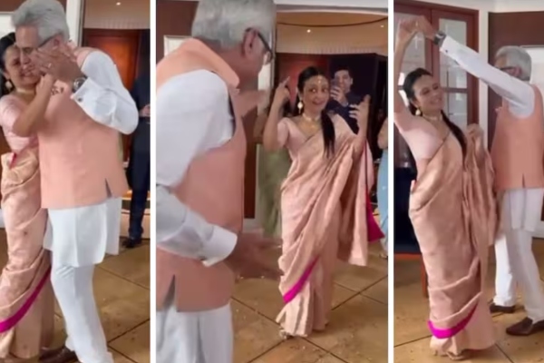 महुआ मोइत्रा ने एक हल्के गुलाबी रंग की साड़ी पहनी हुई है और उनके पति पिनाकी मिश्रा ने एक वेस्टकोट पहना हुआ है. बॉलीवुड गाने “रात के हमसफर” पर डांस करते हुए देखा जा सकता है.