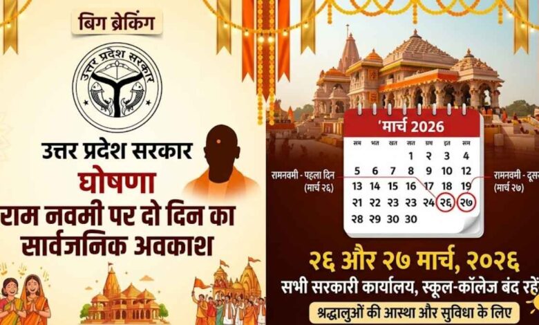 उत्तर प्रदेश सरकार ने रामनवमी के अवसर पर एक महत्वपूर्ण निर्णय लेते हुए इस वर्ष दो दिन का सार्वजनिक अवकाश घोषित किया है।