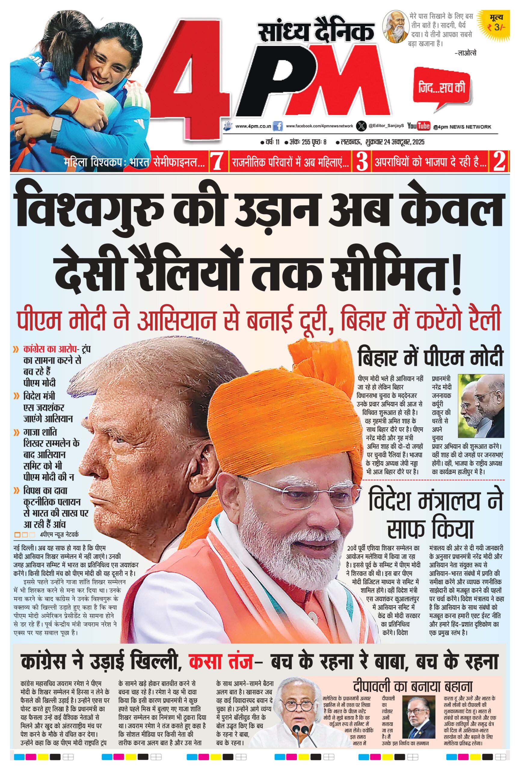 • पीएम मोदी ने आसियान से बनाई दूरी, बिहार में करेंगे रैली