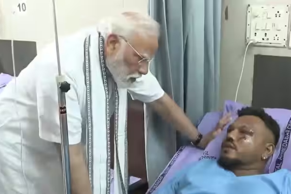 प्रधानमंत्री नरेन्द्र मोदी ने अहमदाबाद में एअर इंडिया के विमान की दुर्घटना में घायल हुए लोगों से शुक्रवार को सिविल अस्पताल में मुलाकात की. मोदी ने विमान में सवार यात्रियों में से एकमात्र जीवित बचे विश्वास कुमार रमेश से भी मुलाकात की.