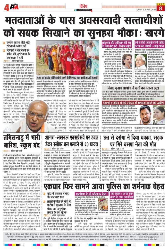 बिहार विधानसभा चुनाव के पहले चरण में कुल 3.75 करोड़ मतदाता 1,314 उम्मीदवारों की चुनावी किस्मत का फैसला करेंगे।उन्होंने कहा कि एक ऐसे बिहार का निर्माण करना है जहां राज्य के युवाओं का भविष्य सुरक्षित हो, उन्हें बेरोजगारी और पलायन का दंश नहीं झेलना पड़े। कांग्रेस अध्यक्ष ने कहा, समाज के हर वर्ग- दलित, महादलित, आदिवासी, पिछड़ा, अति-पिछड़ा, आर्थिक रूप से कमज़ोर, अल्पसंख्यक सभी को बराबर का हक़ मिले और सामाजिक न्याय की एक नई परिहम रचें जिससे देश की तरक़्क़ी में बिहार का योगदान बढ़े।ÓÓउन्होंने इस बात पर जोर दिया, पिछले 20 वर्षों में बिहार में भ्रष्टाचार, कुशासन और जंगलराज को ‘विकासÓ की ब्रैंडिंग कर, अवसरवादी हुक्मरानों ने जो जनता के साथ विश्वासघात किया है उन्हें सबक सिखाने का आज बिहार की जागरुक जनता के पास सुनहरा मौक़ा है। ये अवसर जाने ना दें। खरगे ने कहा, मैं ख़ासकर पहली बार वोट डालने वाले युवाओं से दिल से अपील करता हूं कि वो इस मौक़े को ना गंवाएं और परिवर्तन के लिए अपने मताधिकार का ज़रूर प्रयोग करे। वोट ज़रूर करें और अपने मित्रों व परिवारजनों को भी प्रोत्साहित करें। खरगे ने ‘एक्सÓ पर पोस्ट किया, लोकतंत्र की जन्मस्थली, बिहार में विधानसभा चुनाव के पहले चरण का मतदान शुरू हो चुका है। मेरी बिहार के मतदाता से अपील है कि अधिक से अधिक संख्या में अपने संवैधानिक अधिकार का इस्तेमाल करें और 20 साल बाद प्रदेश को बदलाव की एक नई दिशा प्रदान करें।