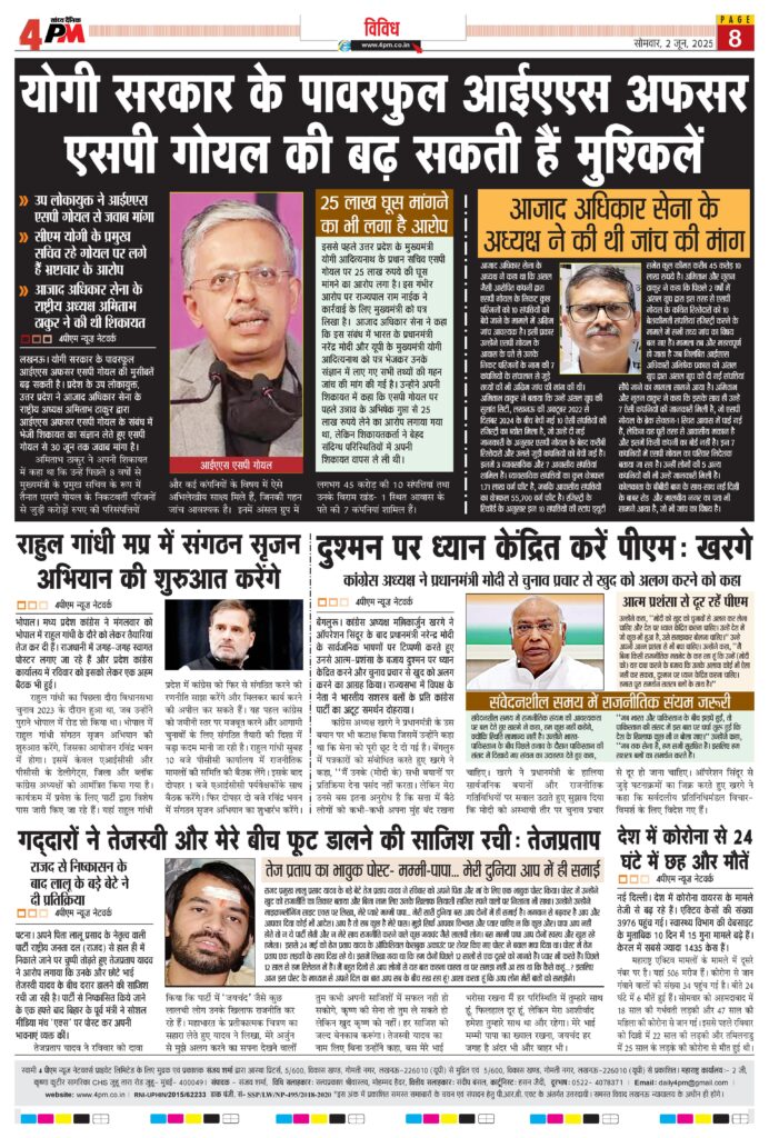 इससे पहले उत्तर प्रदेश के मुख्यमंत्री योगी आदित्यनाथ के प्रधान सचिव एसपी गोयल पर 25 लाख रुपये की घूस मांगने का आरोप लगा है। इस गंभीर आरोप पर राज्यपाल राम नाईक ने कार्रवाई के लिए मुख्यमंत्री को पत्र लिखा है। आजाद अधिकार सेना ने कहा कि इस संबंध में भारत के प्रधानमंत्री नरेंद्र मोदी और यूपी के मुख्यमंत्री योगी आदित्यनाथ को पत्र भेजकर उनके संज्ञान में लाए गए सभी तथ्यों की गहन जांच की मांग की गई है। उन्होंने अपनी शिकायत में कहा कि एसपी गोयल पर पहले उन्नाव के अभिषेक गुप्ता से 25 लाख रुपये लेने का आरोप लगाया गया था, लेकिन शिकायतकर्ता ने बेहद संदिग्ध परिस्थितियों में अपनी शिकायत वापस ले ली थी।