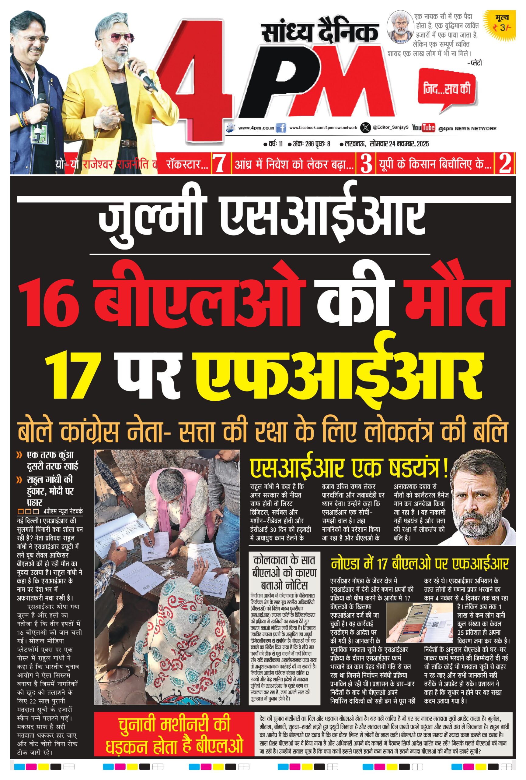 राहुल गांधी ने कहा है कि अगर सरकार की नीयत साफ होती तो लिस्ट डिजिटल, सर्चेबल और मशीन-रीडेबल होती और ईसीआई 30 दिन की हड़बड़ी में अंधाधुंध काम ठेलने के बजाय उचित समय लेकर पारदर्शिता और जवाबदेही पर ध्यान देता। उन्होंने कहा कि एसआईआर एक सोची-समझी चाल है। जहां नागरिकों को परेशान किया जा रहा है और बीएलओ के अनावश्यक दबाव से मौतों को कालैटरल डैमेज मान कर अनदेखा किया जा रहा है । यह नाकामी नहीं षडय़ंत्र है और सत्ता की रक्षा में लोकतंत्र की बलि है।